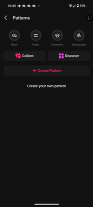 In the Patterns section, you'll find four preset patterns: Dynamic, Enthusiastic, Charismatic, and Rhythmic. By clicking on the Patterns tab, you unlock four more options: Wave, Pulse, Fireworks, and Earthquake. Each of these pre-made patterns offers a different vibe and runs for about 10 seconds. Once one pattern completes, the next automatically starts, but you can easily skip or fast-forward to your favorites.